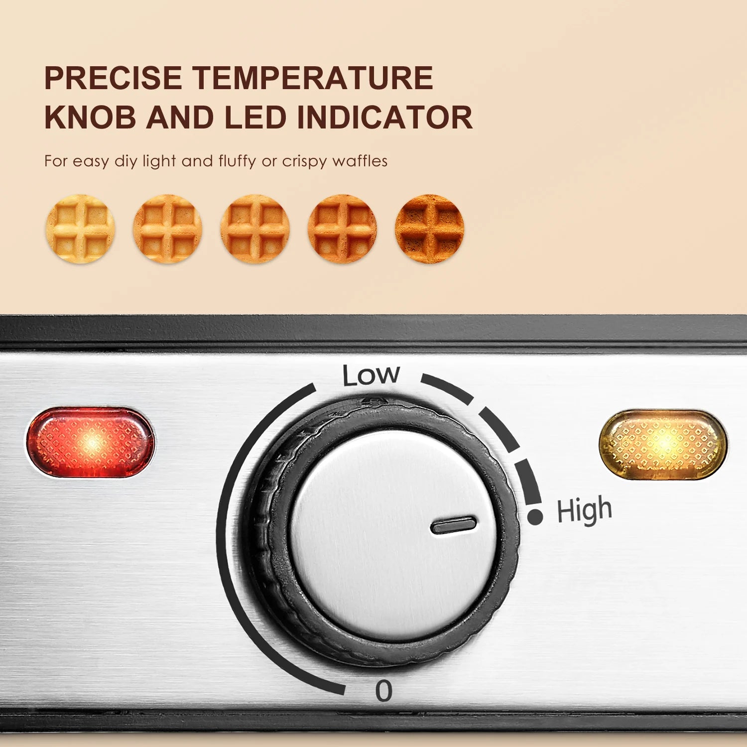 - Nonstick, easy-release plates — Enjoy trouble-free waffles with minimal sticking and quick cleanup; interchangeable plates offer versatile waffle styles for your toppings.