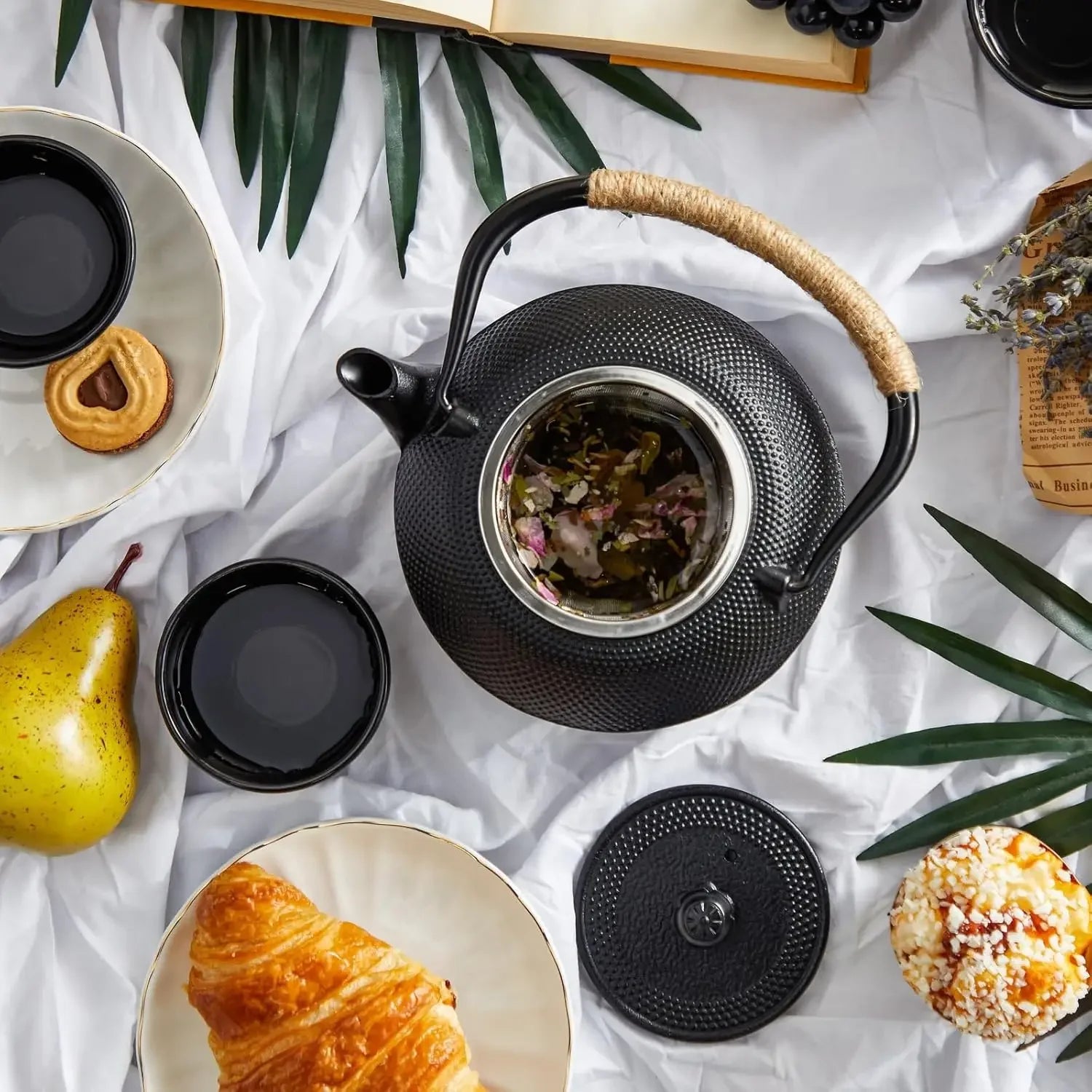 - Material and design: Ceramic construction in a sleek black finish with a lid included; hobnail detailing adds vintage charm to your kettle.