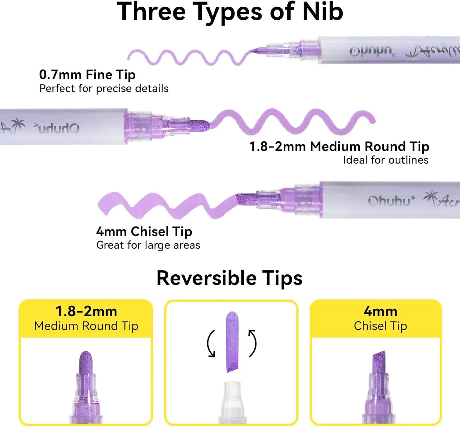 Unleash bold, studio-ready art with Ohuhu Acrylic Paint Markers in a 48-marker set featuring reversible tips for limitless creativity.