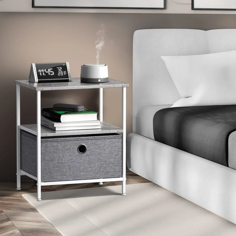 XMSJ Rustic End Table With Wood Top And Fabric Drawer